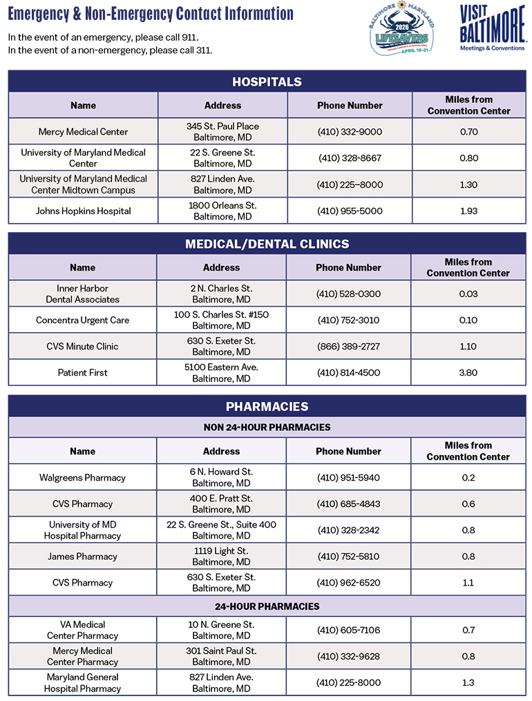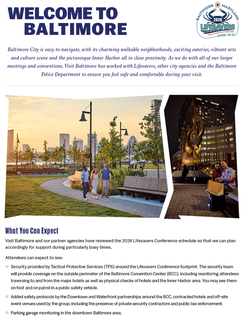 Safety & Security All 2026 conference activities will be held in Baltimore, MD, from April 19-21, 2026. Click the images below to enlarge/open pdf files.